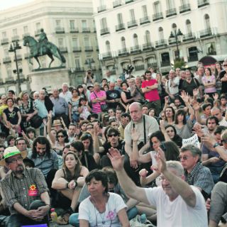 El movimiento de los “indignados” nació el 15 de mayo de 2011, con la intención de denuncia el poder, el capitalismo, las finanzas, el desempleo y la corrupción. Antes de la prohibición y posterior desalojo, los “indignados” habían instalado su campamento durante un mes en la Puerta del Sol, en pleno centro de Madrid.