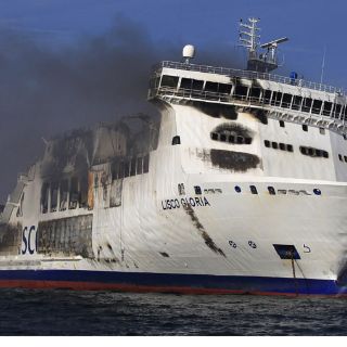 El transbordador “Lisco Gloria” se incendió el sábado luego de una explosión accidental en la cubierta superior, que obligó a evacuar a sus 249 ocupantes, 28 de ellos heridos.