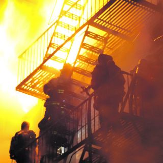 NUEVA YORK, ESTADOS UNIDOS (21/FEB/2011).- El esfuerzo de los bomberos por apagar un incendio en un edificio en Nueva York se vio afectado por los fuertes vientos que recorren Estados Unidos.