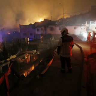 Chile, Michelle Bachelet, llegó hoy a Valparaíso para conocer en terreno los detalles del gran incendio que ha arrasado cinco cerros de esta ciudad portuaria, con un balance provisional de ocho