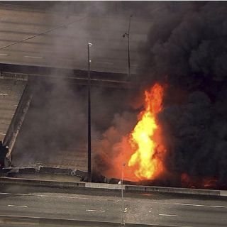 Incendio provoca derrumbe de puente carretero de Atlanta