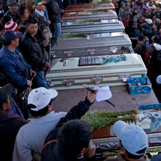 Los seis féretros con los cuerpos de las víctimas fueron colocados en el centro de la plaza central, donde un sacerdote maya y autoridades locales encabezaron una sencilla ceremonia.
