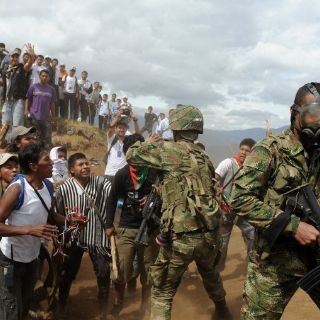 La semana pasada, los indígenas caucanos instaron a los militares y a los rebeldes de las Fuerzas Armadas Revolucionarias de Colombia (FARC) a que abandonaran sus tierras por los constantes enfrentamientos armados entre los dos bandos. El gobierno ha dicho que, si bien está dispuesto al diálogo, eso no sucederá y que los militares no cederán un solo centímetro del territorio nacional.