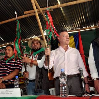 Santos viajó acompañado del ministro del Interior, Federico Renjifo, con quien los indígenas concertaron el martes la visita del mandatario.