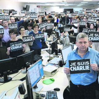 Además, más de 100 mil personas se concentraron en toda Francia para rendir homenaje a las víctimas del sangriento atentado, que también dejó 11 heridos. Muchos portaban una calcomanía negra donde podía leerse “Je suis Charlie” (”Yo soy Charlie”), un lema de solidaridad con las víctimas mortales, entre ellos cuatro caricaturistas destacados.