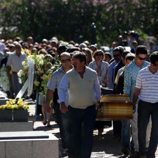 Grupos de personas, muchos de ellos jóvenes universitarios como la mayoría de las víctimas, acompañaban a los ataúdes en su llegada al camposanto.