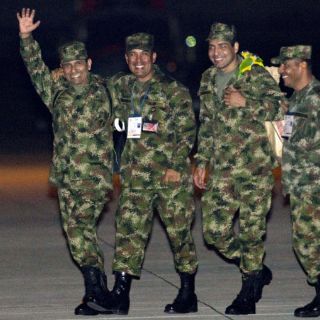 Más tarde, los liberados -algunos de los cuales descendieron de la nave brasileña vistiendo uniformes policiales verde olivo o camuflados del Ejército- fueron trasladados en un avión de la fuerza pública a Bogotá.