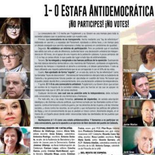 "Rechazamos el 1 de octubre como una trampa antidemocrática. Y llamamos a no participar en esta convocatoria, que es lo opuesto a un ejercicio de libre decisión del pueblo de Cataluña", sostienen.