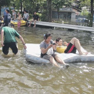TAILANDIA (30/OCT/2011).- Las defensas que protegen el centro de la capital de Tailandia de las peores inundaciones en casi 60 años resistieron el agua mientras alcanzaba niveles críticos (imagen), pero persistían las anegaciones en la afueras de la ciudad y parte de las regiones rurales. La primera ministra, Yingluck Shinawatra, dijo que aunque las inundaciones han comenzado a descender, ya han causado 400 muertos, han cubierto poblados enteros en el territorio principal del país y han paralizado cientos de fábricas en los últimos dos meses.