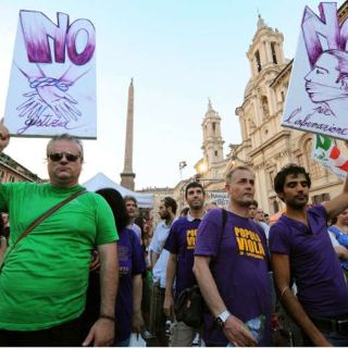 Las convocatoria, realizada por la Federación Nacional de la Prensa Italiana (FNSI) y proyectada también para París, Londres y Bruselas, tuvo el apoyo de organizaciones sociales y formaciones políticas opositoras como el Partido Demócrata (PD) , Italia de los Valores (IDV) y los Verdes.
