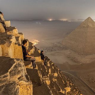 Y continúa: ''Trepamos por las losas de piedra de uno de los edificios más antiguos de la humanidad mientras escuchábamos el eco de la oración en Giza, y sin darnos cuenta estábamos en la parte superior''.