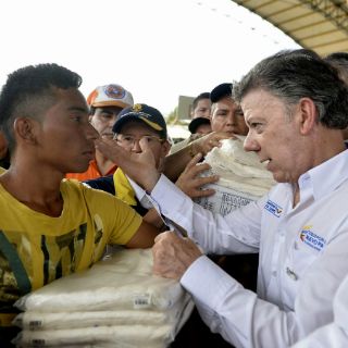 "Ustedes son colombianos. Siempre serán bienvenidos aquí. Esta es su patria", repetía el presidente a todos los damnificados que saludaba, incluso a Rosa, una venezolana esposa de un colombiano deportado.