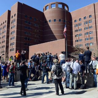 Según WBZ, la evacuación se debió a una "amenaza de bomba" en los juzgados, por la que tanto curiosos como prensa fueron reubicados a más de 60 metros del inmueble.