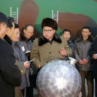 Kim Jong-Un posa junto a posible maqueta de ojiva nuclear