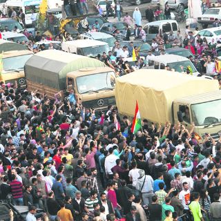 Casi al mismo tiempo un convoy de más de 40 vehículos cargados con armas pesadas arribó a Turquía, donde cientos de personas los recibieron agitando banderas kurdas; “Larga vida a los peshmergas”, gritaron habitantes de la zona fronteriza en apoyo a los combatientes.