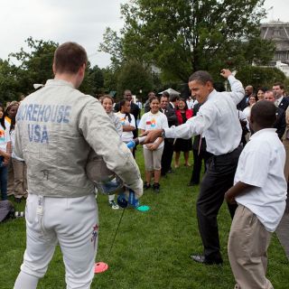"¡Feliz Día de Star Wars! #maythefourthbewithyou (Aún así no construiremos una Estrella de la Muerte)" fue el mensaje en inglés enviado por la red social, el cual fue acompañado por una imagen de archivo (septiembre de 2009) del Presidente Barack Obama utilizando una réplica de sable láser en una reunión con niños en los jardines de la Casa Blanca.