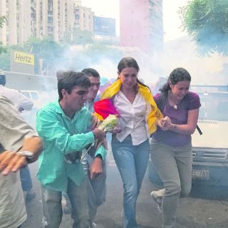CARACAS, VENEZUELA (02/ABR/2014).- La Policía de Venezuela dispersó con gases lacrimógenos y perdigones a cientos de simpatizantes de la líder opositora María Corina Machado, quienes la acompañaban en una marcha hacia el Parlamento venezolano. El Tribunal Supremo de Justicia ratificó el desafuero de la diputada.