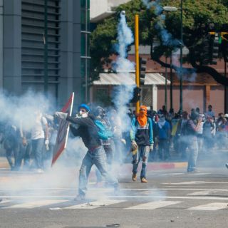 CARACAS, VENEZUELA (13/ABR/2014).- Con gases lacrimógenos y bombas de agua, la Guardia Nacional y la Policía Bolivariana dispersaron una manifestación organizada por estudiantes opuestos al Gobierno venezolano, que no aceptan el diálogo por la paz cuya primera etapa se realizó el pasado jueves.