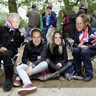 Entre los asistentes se encontraban los 10 mil afortunados de todas las edades que consiguieron a través de un sorteo entradas para el concierto de esta noche, a las puertas del Palacio, que forma parte de las conmemoraciones de los 60 años en el trono de la reina y que contará con estrellas del pop como Paul McCartney o Kylie Minogue.