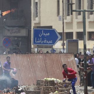 La televisión egipcia mostró imágenes de la batalla campal esta mañana en el barrio de Abasiya, en las que se veía hogueras y el humo de los gases lacrimógenos