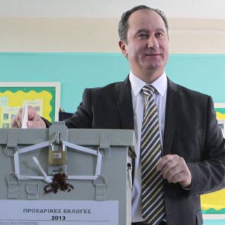 Stavros Malas, el candidato por el partido comunista del saliente presidente Dimitris Christofias, fue el primero en depositar su voto a primera hora de la mañana.