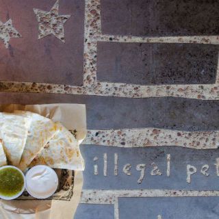 "Illegal Pete's", sirve burritos y tacos al estilo California, similar al concepto de la cadena Chipotle Mexican Grill. Empero, cuenta con un bar completo y sirve desayuno, almuerzo y cena, que es amenizada con frecuencia con música en vivo.