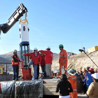 La cápsula fue recibida por los familiares de los mineros que aguardan en la superficie con el tradicional grito: "Chi, Chi, Chi, le, le, le, viva Chile".