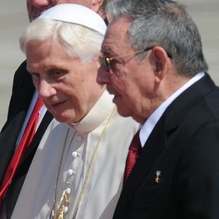 Benedicto XVI fue recibido el presidente de Cuba, Raúl Castro, quien le dio la bienvenida y en su mensaje de recepción dijo que Cuba está enfrentada a la opción de ser independiente o dejar de existir como nación.