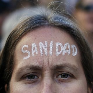 "'Privémonos' de privatizadores", "una sanidad pública, gratuita y de calidad", eran algunos de los lemas que figuraban en las pancartas de los manifestantes, entre las que también figuraba el "No" con el dibujo de unas tijeras.