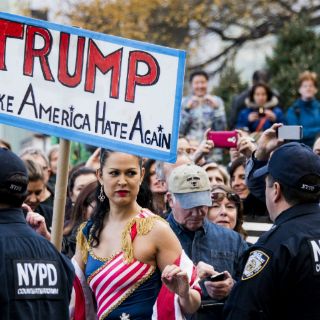 Nueva York, para criticar la reciente retórica antimusulmana del multimillonario mientras personal de seguridad echaba a algunos del evento.