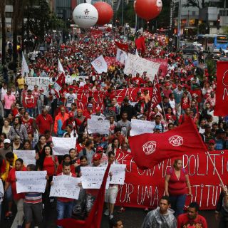 Bajo el lema "Marcha popular por las reformas, contra la derecha, por más derechos", cerca de 22 mil personas recorrieron el centro de Sao Paulo, con fuertes lluvias en la tarde del jueves, según afirmó María Siqueira, una de las portavoces del MTST.