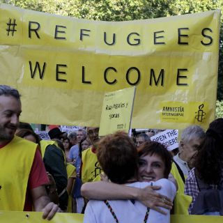 En Madrid, miles de personas recorrieron desde la Plaza de Atocha algunas calles del centro de la ciudad con una pancarta con el lema "Bienvenidos refugiados" y a ella se sumaron numerosos políticos de izquierda y sindicalistas.