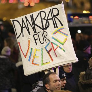 La dirección de la ópera de Dresde decidió oponerse a la manifestación anti islam apagando las luces del edificio y desplegando cuatro banderas que rezaban ''Abrid los ojos'', ''Abrid los corazones'', ''Abrid las puertas'' e, invocando la Constitución alemana, ''La dignidad de las personas es intangible''.