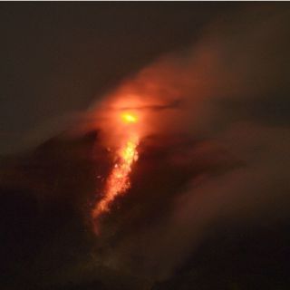 Indonesia a causa de un volcán que lleva en erupción varios meses, y escupió lava en nueve ocasiones durante la noche, indicaron las autoridades.