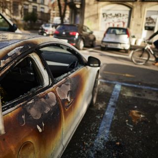 Los manifestantes arrancaron las puertas de un coche donde se habían refugiado varios policías y quemaron el uniforme de una de las agentes, que no resultó herida.