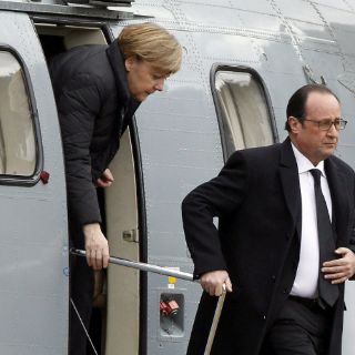 Merkel y Hollande sobrevuelan lugar de accidente aéreo en los Alpes