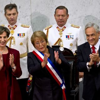 La flamante presidenta, que volvió este martes al poder tras haber gobernado al país del 2006 al 2010, recibió luego de manos de Allende la banda presidencial, que antes había sido entregada por Piñera a la titular del Senado.