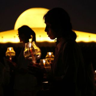 Posteriormente, los asistentes encendieron cirios y los monjes dieron tres vueltas alrededor del altar central del templo Dhammakaya, una por cada uno de los pilares del budismo: Buda, dharma (ley u orden cósmico) y sangha (comunidad monástica).