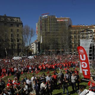 De acuerdo con estimaciones de la CCOO y la UGT, más de 500 mil personas participaron en la manifestación de este domingo en la capital española, que concluyó en la emblemática Puerta de Alcalá, donde se leyó un manifesto.