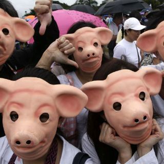 Algunos manifestantes llevaban pancartas que decían: "Senadores, debería darles vergüenza''. Otros llevaban gorros con forma de cerdo o camisetas con leyendas que pedían la abolición del fondo.