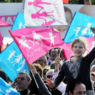 "Hollande retira tu proyecto", "Un niño necesita un padre y una madre" o "Un niño, ni se alquila ni se vende", son algunos de los lemas que portaban las pancartas de la manifestación.