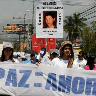 "Queremos vivir en un mundo de paz", "Somos constructores de paz", "Construyamos un mundo de paz", decían algunas de los cientos de pancartas y mantas que llevaban los manifestantes, quienes recorrieron el bulevar Morazán , al este de la ciudad, bajo un inclemente sol.