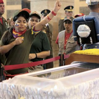 Ni siquiera durante la noche la fila aminoró ni cesaron las consignas que corean los chavistas, muchos de los cuales las repiten cuando llegan ante el ataúd del gobernante, donde además se persignan, se llevan la mano al corazón o la empuñan en lo alto, por lo general con lágrimas en los ojos.