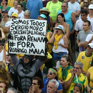 Los manifestantes, muchos vestidos con los colores de la bandera brasileña, se congregaron a lo largo de una céntrica avenida en Sao Paulo y junto a la playa de Copacabana, en Rio de janeiro, entre otros sitios. Muchos llevaban camisetas o llevaban banderas en respaldo a Sergio Moro, el juez que ha encabezado una investigación sobre un esquema de sobornos en la compañía petrolera nacional, varios conglomerados de construcción y políticos.