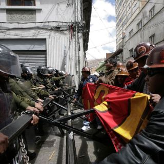 Los mineros intentaron entrar en el corazón de La Paz, donde el gobernante tiene sus oficinas, en medio de reclamos laborales por aumentos salariales.