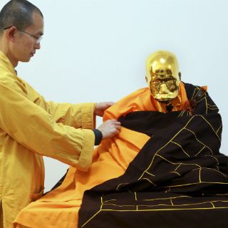 BEIJING, CHINA (28/04/2016).- Un venerado monje chino ha sido momificado y cubierto en una hoja de oro, una práctica reservada para hombres santos en algunas áreas con sólidas tradiciones budistas.