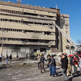 Según fuentes locales, los atacantes estaban armados con pistolas, granadas, chalecos suicidas y estaban tratando de forzar su entrada en la central policial tras la agitación causada por el coche bomba que causo daños a edificios cercanos.