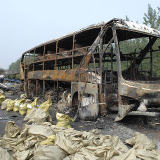 Mueren 41 personas tras incendiarse un autobús en China