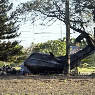 De acuerdo con imágenes difundidas por medios de prensa, la avioneta quedó destrozada y envuelta en llamas.