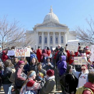 Mujeres en EU hacen paro y asisten a marchas